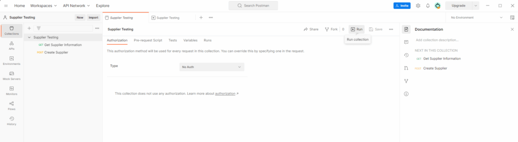 Once you’ve created all of your requests, you can run the entire collection by clicking on the Collection Runner button in the top-left corner of the screen. This will allow you to run all of the requests in the collection and view the results.
